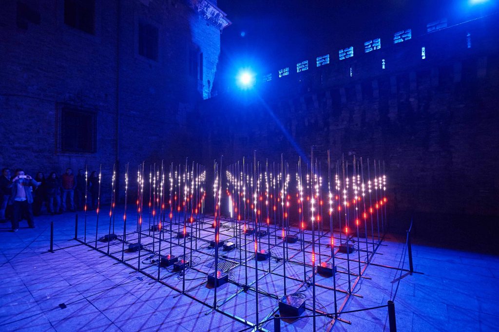 Geología efímera y luminosa de un movimiento en el espacio. Stratum es una instalación interactiva que permite influir en un “territorio de la luz” mediante un gesto. El curso de la mano sobre una interfaz de captura se materializa en el espacio por medio de estratos de luz. Esta reacción desencadena una reminiscencia visual del gesto, visible y tangible, como una geología efímera del movimiento, que construye distintos universos (cueva, suelo, lluvia, rayo y estratosfera) donde el propio espectador se sumerge.