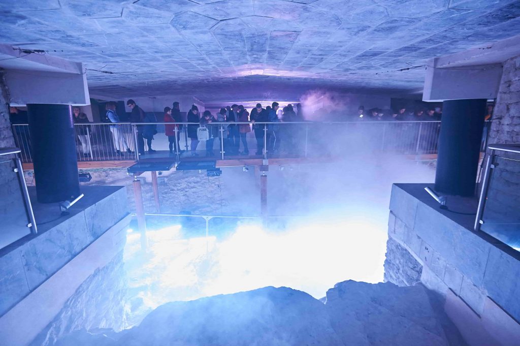Partiendo de ese mar y ayudados por la luz y la música se genera un clima que durante unos minutos posibilita ver la Cripta desde otra perspectiva.